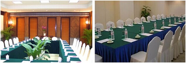 5、“U”型:将桌子连接着摆放成长方形,在长方形的前方开口,椅子摆在桌子外围,通常开口处会摆放放置投影仪的桌子,中间通常会放置绿色植物以做装饰;不设会议主持人的位置以营造比较轻松的氛围;多摆设几个麦克风以便自由发言;椅子套上椅套会显示出较高的档次。 6、鸡尾酒会式:以酒会式摆桌,只摆放供应酒水、饮料及餐点的桌子,不摆设椅子,以自由交流为主的一种会议摆桌形式,自由的活动空间可以让参会者自由交流,构筑轻松自由的氛围会议摆台。